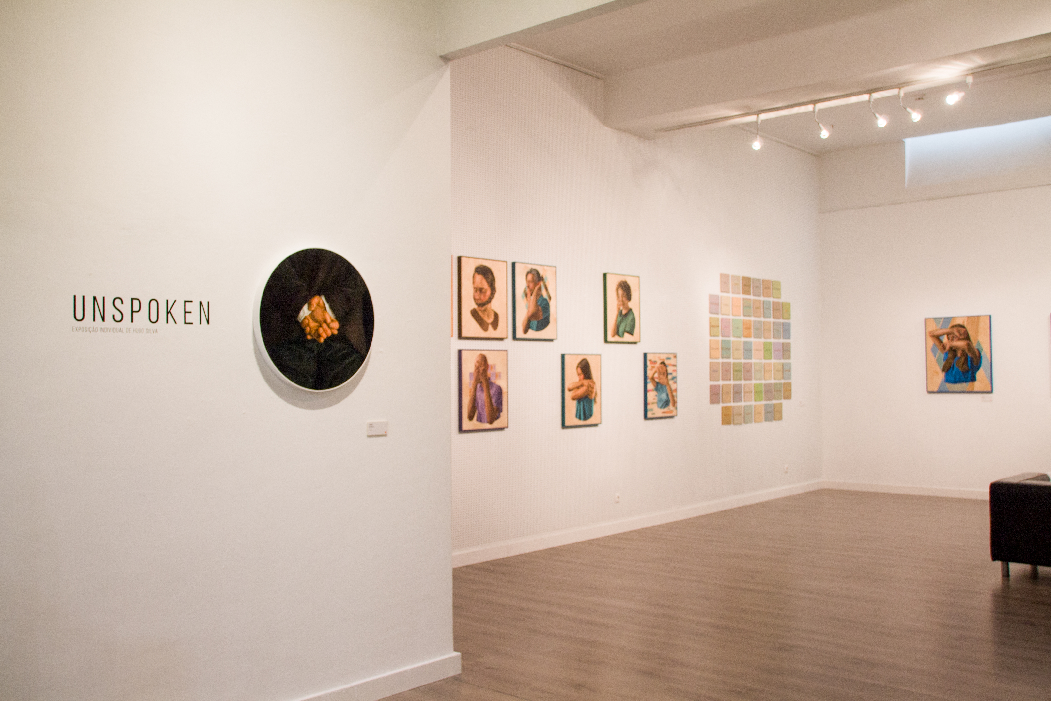 O silêncio costuma carregar o peso do indizível. Atinge-nos com estrondo e grita-nos, frequentemente, segredos com origem no mais profundo do humano. O que é extraordinário é que aquilo a que chamamos segredos podem muito bem ser coisas do quotidiano, embora reflexos da expressão de uma memória profunda, primordial, que nos constitui e que faz do humano, humano. A “ciência” do silêncio, como poderíamos chamar à investigação em torno do que não é dito, daquilo que fica nas expressões, nos sinais que constantemente emitimos, e que através deles expressam mundos inteiros, desvela-nos este universo de que bastas vezes não nos damos conta: existe uma linguagem, de uma complexidade extrema em que a mente e o corpo parecem confiar mais do que na própria língua falada. Uma linguagem que parece superar as palavras e parece traçar velhas filosofias, tão antigas que antecedem o verbo. Uma poética do início dos tempos. "Unspoken" é o olhar que se deposita sobre a pessoa amada, é o gesto que emociona um desconhecido e que nos faz interrogar acerca dos mistérios que aquele rosto encerra. A poesia que brota de um corpo cuja expressão de beleza transcende o que a sociedade nos impõe. Damo-nos conta, então, no confronto com estas pinturas, que Hugo Silva coloca a sua técnica ao serviço de uma poética da linguagem do gesto. Parece existir uma investigação em busca do significado último da expressão daquele rosto fechado em si mesmo, daquelas mãos cujos dedos se arqueiam ligeiramente como se pretendessem segurar a vida que lhes parece escapar.